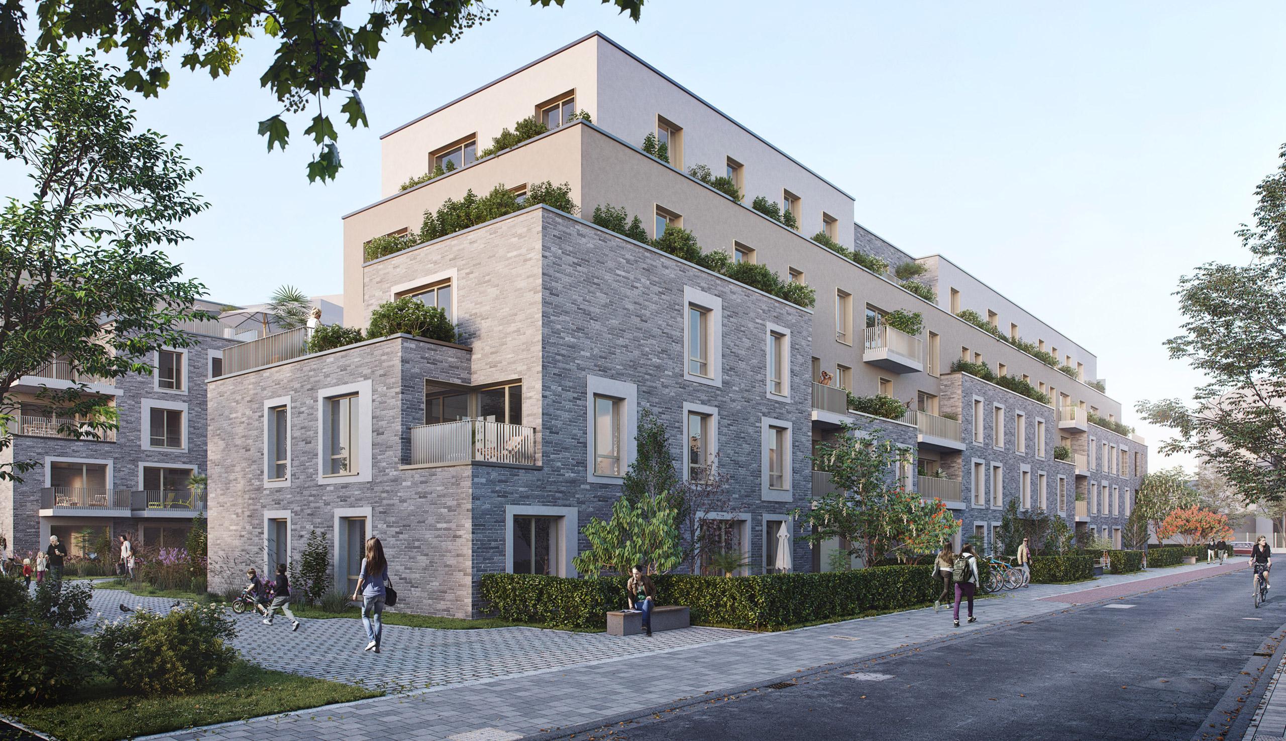 L’implantation du bâtiment permet de recréer un front bâti le long de la rue Barbourg et de la rue des Mines, tout en offrant des espaces de respiration animés et structurés par les retraits et les décrochés de la façade ainsi que par les balcons.